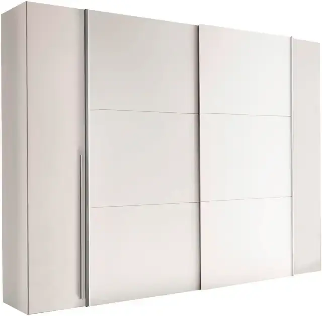 Kombitüren für Komfort – Zwei Schwebetüren in der Mitte und zwei Drehtüren außen bieten flexible Zugänge, sind platzsparend und haben ein modernes Design.. Viel Stauraum – Die Einlegeböden bieten reichlich Platz für Accessoires und gefaltete Kleidung, die Kleiderstangen für ideale Aufbewahrung von Hemden, Kleidern und Jacken.. Ordnung mit System – Die durchdachte Innenaufteilung sorgt für Übersicht und Ordnung und bringt somit Struktur in deinen Alltag – stilvoll, praktisch, griffbereit!. Platzsparend & durchdacht – Die Schwebetüren öffnen sich leise und raumsparend – perfekt auch für kleinere Räume oder enge Durchgänge.. Moderner Look mit Struktur – Klare Linien, funktionale Aufteilung und vielfältiger Stauraum machen Maturs zum praktischen Hingucker in jedem Zimmer.