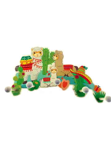 Die bunte Garderobe aus Holz ist ein absoluter Blickfang in jedem Kinderzimmer oder Flur. Die lustigen Motive und die farbenfrohe Gestaltung sorgen für eine freundliche Atmosphäre und gute Laune.Die 5 Kleiderhaken bieten viel Platz für Jacken, Pullover und alles was aufgehängt werden kann. Die liebevolle Gestaltung und das kindliche Design sorgt beim Anziehen für ein Lächeln. Wird sie in einer niedrigen Höhe aufgehängt, können die Kleinen sich schon bald ganz alleine ankleiden. •schöne farbenfrohe Garderobe •aus zertifizirtem Holz •lackiert •mit 5 Haken •ca. 340 x 230 mm Achtung! Dekoration, kein Spielzeug.