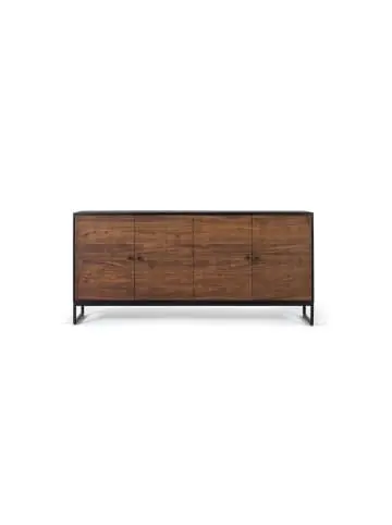 Sideboard mit 4 Türen ausund Mangoholz mit Metallgestell. Maße: 80 cm Höhe x 170 cm Breite x 40 cm Tiefe. Kombination aus Braun- und Schwarztönen. Gewicht: 65 kg. Lieferung in einem Paket. Naturholz und Handarbeit, daher mögliche Abweichungen in Farbe und Maserung. Wood