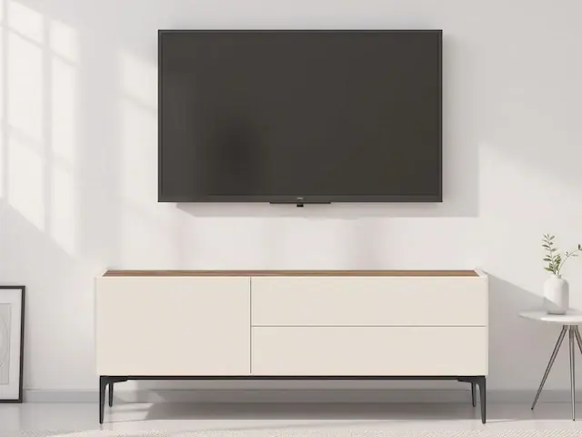 Pflegeleichte Oberfläche. Lackiert mit wasserbasiertem UV-Lack, besonders kratzfest. Die Oberkante der Tür ist im 45-Grad-Winkel geschnitten. Soft-Close-Funktion. FSC®-zertifiziertes Massivholz