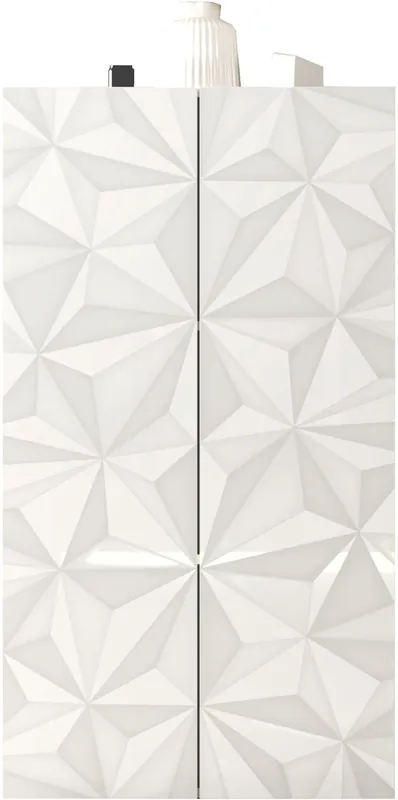 Der Aktenschrank Maße B/T/H 63/35/114 cm mit einem besonderen Siebdruck in der Front in Weiß Hochglanz Lack.. Ein Stauraumschrank in einem modernen, italienischen Design, der im Inneren wahlweise Platz für Aktenordner, Bücher und andere Dinge hat.. In Ihren Räumen ein Hingucker – ausgestattet mit 2 Drehtüren dahinter 3 Fächer und Beschläge aus Metall.. Durch die melaminbeschichtete Oberfläche punktet der Schrank als langlebig & pflegeleicht.. Die Herstellung erfolgt aus FSC®-zertifiziertem Holzwerkstoff.