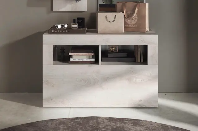 Die Garderobenbank B/T/H 91/35/59 cm in einem zeitlosen Stil passt zu vielen Einrichtungsstilen.. Die dekorative Rahmenoptik verschönert Ihren Flur oder Diele – Made in Italy.. Stauraum für Schuhe (ca. 4 Paar), Schals, Mützen oder andere Utensilien ist vorhanden, 1 Klappe dahinter 2 Fächer, darüber 2 offene Fächer.. Langlebig und pflegeleicht ist die melaminbeschichtete Oberfläche.. Die Herstellung erfolgt aus FSC®-zertifiziertem Holzwerkstoff. Die max. Belastbarkeit des Oberbodens/Top ist auf 40 kg festgelegt.