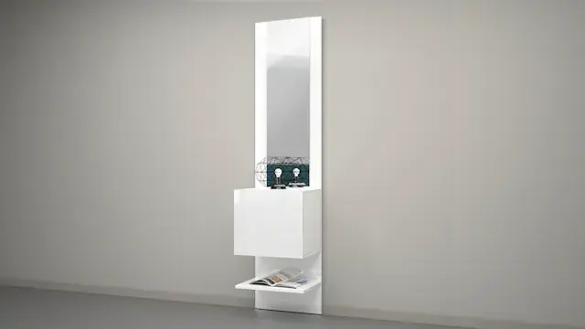 Mit 1 hochglanz Tür. 1 Spiegel. Maße B/T/H 45/35/191. 1 Ablage und Schuhfach. 100 % Made in Italy