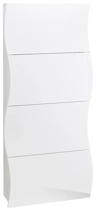 Platz für ca. 32 Paar Schuhe (ohne Absatz). Hochglanz-Front in weiß. Maße (B/T/H): 61-71/27/161 cm. FSC®-zertifiziert. Italian Design