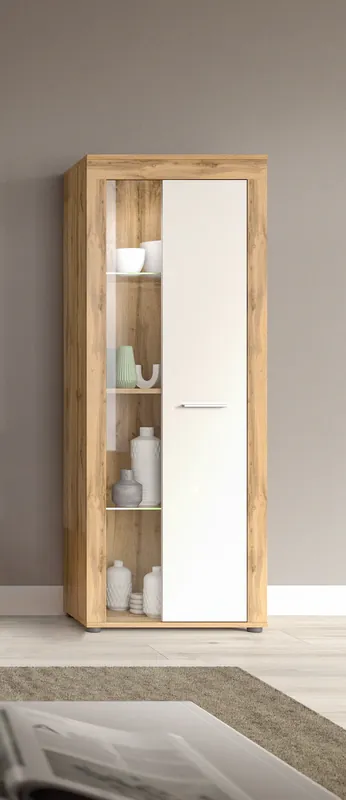 Maße (B/T/H): 60 x 35 x 159 cm. 1 Holzglastür, 2 Glaseinlegeböden, 1 Holzeinlegeboden, 4 Fächer. Viel Stauraum hinter der Glastür sorgt für organisierte Aufbewahrung sämtlicher Gegenstände.. Modernes Design in verschiedenen Farbausführungen. Das Möbel besteht aus FSC®-zertifiziertem Holzwerkstoff zum Schutz der Wälder