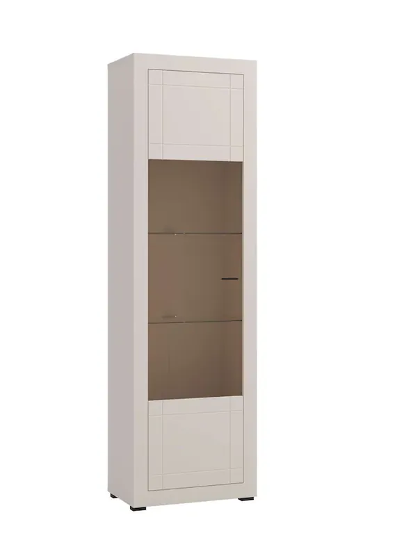 Das Element lässt sich flexibel allein oder mit weiteren Artikeln aus der Serie Warwick kombinieren.. Maße (B/T/H): 58 x 35 x 194 cm. Die Vitrine in Kaschmir – Dekor verleiht dem Raum modernen Stil. Eine funktionale Ergänzung für zeitgemäßes Design und ein elegantes Wohnzimmer. Mit schlag-und stoßfestem ABS Kantenschutz ausgestattet; Schutz vor alltäglichen Belastungen und Du hast ein langlebiges Möbelstück, Heißfolienprägung. FSC®-zertifizierter Holzwerkstoff, in hochwertiger Verarbeitung, Made in Europe