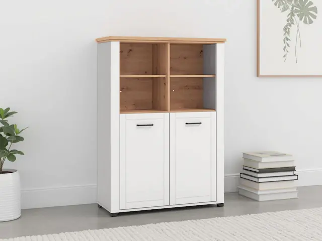 Highboard mit 4 offenen Fächern. Breite 103,5 cm, Höhe 143 cm. FSC®-zertifizierter Holzwerkstoff. In hochwertiger Verarbeitung. Ganzmetall-Scharniere