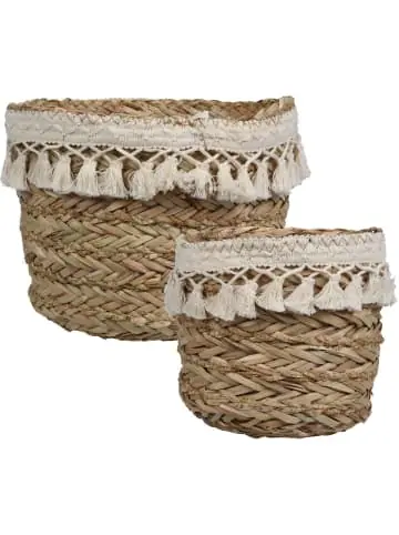 Aufbewahrungskörbe — zusätzlicher Platz für Kinderspielzeug und Raumdekoration in einemSpielzeugkörbe: Zwei Körbe sind im Lieferumfang enthalten. In diesen Behältern können Sie kleine Spielzeuge und Souvenirs sowie Kinderkleidung oder Kosmetik verstecken. Universelle Dekoration: Körbe eignen sich hervorragend als Dekoration für ein Kinderzimmer, aber nicht nur. BOHO-Körbe schmücken das Interieur und sorgen für eine warme, wohnliche Atmosphäre. Material: Die Behälter bestehen aus Stroh in natürlicher Farbe. Dekoratives Klebeband: Um die Körbe herum wurde ein dekoratives, weißes Baumwollband mit aufgehängten Täschchen angebracht. Es verleiht dem Ganzen Charme und Zärtlichkeit. Produktabmessungen: Der größere Korb ist 20 cm x 18 cm und der kleinere ist 15 cm x 16 cm großDieses Produkt darf sicher und in der vom Hersteller vorgesehenen Weise verwendet werden und ausschließlich gemäß den Anweisungen, Empfehlungen, Warnungen oder Sicherheitsinformationen, die auf dem Produkt oder seiner Verpackung angebracht oder beigefügt sind.