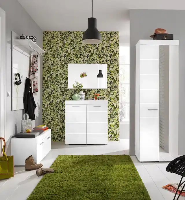 Maße (B/T/H): 62/38/195 cm. Tür mit Spiegelfront. Hochglanz-Fronten. 1 ausziehbare Kleiderstange. FSC®-zertifiziert