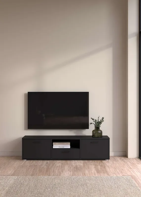 Zeitlose TV-Kommode, wahlweise Breite 147,2 cm oder 172,2 cm. Das Media-Board bietet Platz für Ihre Media-Geräte. Zubehör kann im offenen Fach wie auch in den Schubladen verstaut werden.. Lowboard jeweils mit 2 Türen, mittig 1 Schubkasten und 1 offenes Fach. Kabel können mühelos in der Aussparung der Rückwand versteckt werden.. Made in Denmark