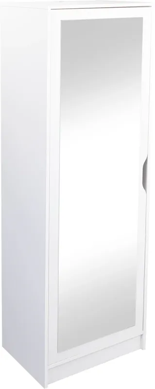 Weißer, griffloser Korpus mit klarer Linienführung für ein zeitloses, minimalistisches Design.. Aus melaminbeschichteter Spanplatte gefertigt, widerstandsfähig gegen Kratzer und einfach zu reinigen.. Eine Tür mit integriertem Spiegel und sieben Einlegeböden bieten Platz für zahlreiche Paar Schuhe.. Schmale Bauweise mit großer Kapazität – ideal für Flur, Diele oder Ankleidezimmer.. Der integrierte Spiegel erweitert optisch den Raum und macht das Outfit-Checken besonders bequem.