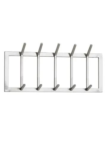 Artikelnummer: FB76004 EAN: 4251757708107Design• Einfarbige Garderobe in schlichtem Design • Wandgarderobe mit zehn Haken • Ideal mit verschiedenen Stilen kombinierbarAbmessungen • Breite: 65 cm • Höhe: 30 cm • Tiefe: 10 cm • Abstände zwischen den Haken: 9,5 cm • Weitere Abmessungen finden Sie im MaßbildFarbe• Komplettes Paneel: SilbernBesonderheiten• Zehn massive Haken auf zwei unterschiedlichen Höhen • Jede Garderobe wurde in liebevoller Handarbeit gefertigt und ist somit ein absolutes Unikat • Empfohlene Maximalbelastbarkeit: 10 kgMaterial• Komplette Garderobe: Stahl, poliertLieferumfang• Eine Wandgarderobe ohne Dekoration • Montagematerial für die Wandbefestigung ist nicht im Lieferumfang enthalten, da dieses von der Wandbeschaffenheit abhängig istMontage• Lieferzustand: komplett montiert und sicher verpacktPflegehinweisMit einem feuchten Tuch, evtl. mit mildem Reinigungsmittel abwischen, mit trockenem Tuch nachwischen – keine scharfen oder lösungsmittelhaltigen Reiniger verwenden.