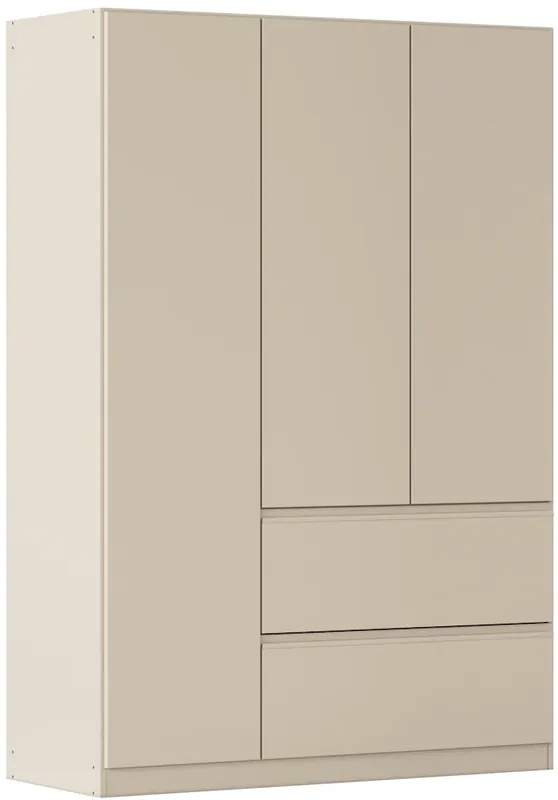 Moderner Kleiderschrank mit grifflosem Design und viel Stauraum. Schrank erhältlich in eleganten Farben – unter anderem auch in Beige. Kleiderschrank inklusive verschiedener Zubehörpakete BASIC/CLASSIC/PREMIUM für Ordnung im Schlafzimmer. Fachböden und Kleiderstangen im Kleiderschrank können individuell eingesetzt und in der Höhe verstellt werden. rauch Schränke sind 100% Made in Germany, ausgezeichnet mit dem Blauen Engel und dem Goldenen M