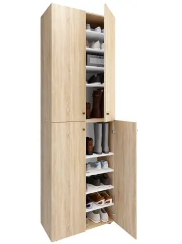 Highlights: — Beschläge aus hochwertigem Metall – Extra viele Fachböden für zehn Fächer- Zwei Drehtüren für eine schöne Optik – Maße ca. H. 220 x B. 70 x T. 40cmDer VCM Schuhschrank „Lona XL 10-Fach“ fällt durch das zeitlose Design und die hochwertige Verarbeitung auf. Genügend Platz für Ihre Schuhe bieten Ihnen ebenso zehn große Fächer. Der Schrank kann mit weiteren Möbeln aus der Serie „VCM Lona“ kombiniert werden. VCM hat sich seit den 70er-Jahren auf die Konstruktion, Produktion und Vertrieb von Möbeln mit einem fairen Preis/Leistungsverhältnis spezialisiert und damit bereits Millionen Haushalte verschönert.- Großes Schuhregal mit 10 Fächern für Schuhe & Stiefel- Maße Schuhregal ca. H. 220 x B. 70 x T. 40cm- Schuhschrank mit variablen Fachböden