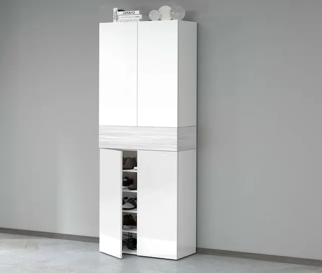 Maße (B/T/H) 76/35/200 cm. ca. 40 paar Schuhe. Bis Schuhgröße 45. 4 Türen 1 Klappe. 100 % Made in Italy