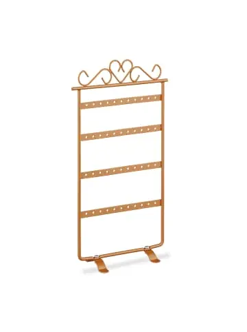 Mit diesem Ohrringständer hängt der passende Ohrschmuck für Dein Outfit jederzeit griffbereit. Der Schmuckhalter bietet auf 4 Etagen ausreichend Stauraum, um Deine Lieblingsstücke unterzubringen. Insgesamt verfügt der Schmuck-Organizer über 44 Steckplätze für Ohrstecker, Ohrringe oder lange Ohrhänger. Der Ohrringhalter überzeugt durch sein romantisches Design mit dekorativer Herzverzierung. So sorgt die Ohrringhalterung für einen Hingucker im Schlafzimmer, Bad oder auf dem Schminktisch.Ohrringhalter im Detail – Gesamtmaße H x B x T: ca. 30,5 x 16,5 x 6,5 cm – Durchmesser Steckplätze: ca. 3 mm – Gewicht: ca. 200 g – Material: Eisen – In verschiedenen FarbenSchmuckorganizer für Ohrringe – Ordentliche und übersichtliche Schmuckaufbewahrung – Ausreichend Stauraum dank 4 Etagen mit je 11 Steckplätzen – Zum Aufhängen von Ohrsteckern oder langen Ohrhängern – Dekoratives Eisengestell mit romantischer Herzverzierung – Ideal für den Schminktisch, das Bad oder SchlafzimmerLieferumfang – 1x Ohrringständer in Farbe nach Wahl – Dekoartikel sind nicht im Lieferumfang enthalten
