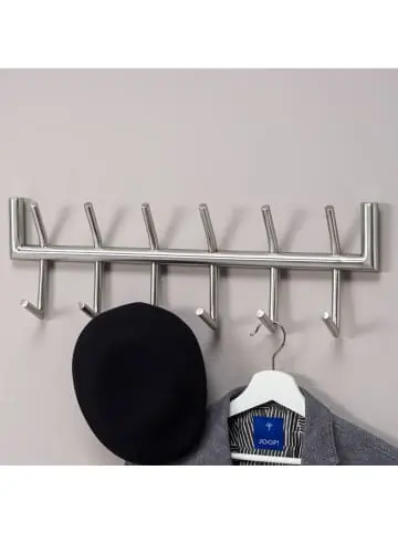 Technische Details: Abmessungen: Höhe: 19 cmBreite: 60 cmTiefe: 10 cmGröße: 60 x 10 x 19 cm Materialien: Material Korpus: Stahl (poliert)Materialhinweis: Komplette Garderobe: Stahl, poliert Materialzusammensetzung: 100% Stahl Farben: Farbe: Silber Technische Spezifikationen: Belastbarkeit: 10 kgGewicht: 3 kg Design und Wohnraum: Style: ZeitlosWohnraum: Flur, Diele, Garderobe Lieferdetails und Montage: Lieferzustand: MontiertArtikelnummer: BARWL6.444 Highlights:Vielseitige Flurgarderobe mit schlichtem, silbernem Design – ideal für unterschiedliche Einrichtungsstile. Größe: 60x19x10 cm.Mit 12 massiven Haken in 2 verschiedenen Höhen bietet diese Garderobe reichlich Platz zum Aufhängen von Kleidung und Accessoires.Jede Garderobe wurde in liebevoller Handarbeit gefertigt und ist somit ein absolutes Unikat – echte Qualitätsarbeit aus poliertem Stahl.Leichte Montage und sichere Verpackung – die Garderobe wird komplett montiert geliefert und lässt sich einfach an der Wand befestigen.Einfache Pflege – mit einem feuchten Tuch abwischen, keine aggressiven Reiniger verwenden. Die empfohlene Maximalbelastbarkeit beträgt 10 kg. Die KADIMA DESIGN Wandgarderobe ist eine vielseitige Flurgarderobe mit einem schlichten und eleganten silbernen Design. Mit den Abmessungen von 60x19x10 cm passt sie ideal in unterschiedliche Einrichtungsstile.Die Garderobe verfügt über 12 massive Haken, die in 2 verschiedenen Höhen angebracht sind. Dadurch bietet sie ausreichend Platz zum Aufhängen von Kleidung und Accessoires.Jede Wandgarderobe wird von Hand in liebevoller Arbeit gefertigt und ist dadurch ein absolutes Unikat. Sie besteht aus poliertem Stahl, der für eine hohe Qualität und Langlebigkeit steht.Die Montage der Garderobe ist einfach und schnell, da sie komplett montiert geliefert wird. Das mitgelieferte Montagematerial zur Wandbefestigung kann je nach Wandbeschaffenheit individuell verwendet werden.Für die Pflege der Garderobe genügt ein feuchtes Tuch mit mildem Reinigungsmittel. Aggressive Reiniger sollten vermieden werden. Zudem ist die empfohlene Maximalbelastbarkeit bei 10 kg, so dass die Garderobe problemlos beladen werden kann.Mit der KADIMA DESIGN Wandgarderobe erhalten Sie nicht nur ein funktionales Aufbewahrungselement, sondern gleichzeitig ein stilvolles und hochwertiges Designobjekt für Ihren Flur. Lassen Sie sich von diesem Unikat begeistern!Über KADIMA DESIGN:KADIMA DESIGN steht für Innovation und Kreativität. Wir sind Spezialisten im Bereich Design, Markenartikel und fachmännische Beratung. Unser Hauptaugenmerk liegt auf vielfältigen und hochwertigen Möbelstücken und Teppichen, die wir aus aller Welt für Sie zusammenstellen.