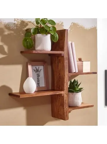 Technische Details: Abmessungen: Höhe: 60 cmBreite: 58 cmTiefe: 15 cmGröße: 58 x 15 x 60 cm Materialien: Material Korpus: Massivholz Sheesham (mit Klarlack beschichtet)Materialhinweis: Komplettes Regal: Sheesham Massivholz, mit Klarlack beschichtet Materialzusammensetzung: 100% HolzHolzart: Sheesham Farben: Farbe: Braun Technische Spezifikationen: Belastbarkeit: 10 kgGewicht: 14 kg Design und Wohnraum: Style: ModernWohnraum: Wohnzimmer, Esszimmer, Schlafzimmer Lieferdetails und Montage: Lieferzustand: MontiertArtikelnummer: BARWL6.528 Highlights:Ästhetisches Baum-Regal-Design aus massivem Sheesham-Holz für moderne Wohnräume (58x60x15cm)4 geräumige Ablageflächen für Fotos, Bücher und Dekoration (max. Belastung: 10kg)Jedes Regal ist einzigartig durch Handgefertigte Naturprodukte mit leichten Farbabweichungen und UnebenheitenInklusive Rückseiten-Montagevorrichtung zur einfachen WandbefestigungPflegeleichte Oberfläche mit sanfter Reinigung ohne scharfe Reinigungsmittel oder nasses Tuch Das KADIMA DESIGN Wandregal Baum-Form ist eine moderne und auffällige Ergänzung für jeden Wohnraum. Das Regal hat eine ästhetische Baumform, die aus massivem Sheesham-Holz gefertigt ist. Mit den Maßen 58x60x15cm bietet es 4 großzügige Ablageflächen für Ihre Fotos, Bücher und Dekoration, wobei jede bis zu 10kg tragen kann.Jedes einzelne Wandregal wurde mit Liebe von Hand gefertigt und ist dadurch einzigartig. Durch die Verwendung von Naturprodukten kann es zu leichten Farbabweichungen und Unebenheiten kommen, die dem Regal aber einen extra Charme verleihen. Dank der Montagevorrichtung auf der Rückseite lässt sich das Regal einfach an Ihre Wand befestigen.Die pflegeleichte Oberfläche des Regals kann mit einem lauwarm angefeuchteten Baumwolltuch gereinigt werden. Sie sollten jedoch keine Scheuermittel, scharfe Reinigungsmittel oder nasse Tücher verwenden, um die Oberfläche zu schonen.Das KADIMA DESIGN Wandregal Baum-Form passt perfekt in moderne Wohnräume und bietet Ihnen nicht nur eine praktische Aufbewahrungslösung, sondern auch ein attraktives Designstück, das Ihre Dekoration zur Geltung bringt.Mit diesem Regal können Sie Bücher, Fotos und Dekoration stilvoll präsentieren und gleichzeitig Ihren Wohnraum optisch aufwerten. Durch seine besonders stabile Konstruktion und die maximale Belastbarkeit von 10kg pro Ablage bietet es Ihnen eine sichere Aufbewahrungslösung für all Ihre Gegenstände.Über KADIMA DESIGN:KADIMA DESIGN steht für Innovation und Kreativität. Wir sind Spezialisten im Bereich Design, Markenartikel und fachmännische Beratung. Unser Hauptaugenmerk liegt auf vielfältigen und hochwertigen Möbelstücken und Teppichen, die wir aus aller Welt für Sie zusammenstellen.