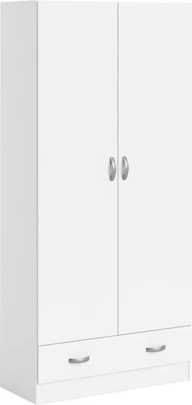 Garderobenschrank mit einer Tiefen von 35,7 cm. mit 2 Türen und 3 verstellbaren Einlegeböden. 2 Türen und und 1 Schubkasten, innen 3 verstellbaren Einlegeböden. FSC®-zertifizierter Holzwerkstoff. Breite/Höhe: 79,4/170,4 cm. Made in Denmark
