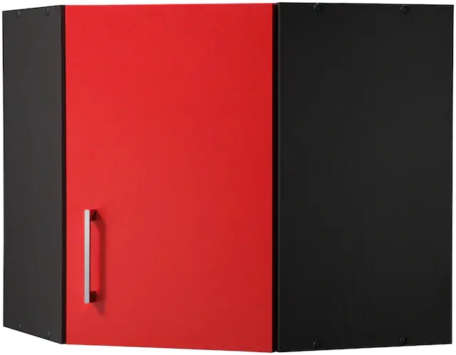 Hochwertiger Küchen-Eckhängeschrank aus Holzwerkstoff. Bietett viel praktischen Stauraum. Der Türanschlag kann beliebig montiert werden. Beliebig erweiterbar, auch über Eck. Alle Scharniere sind aus Metall