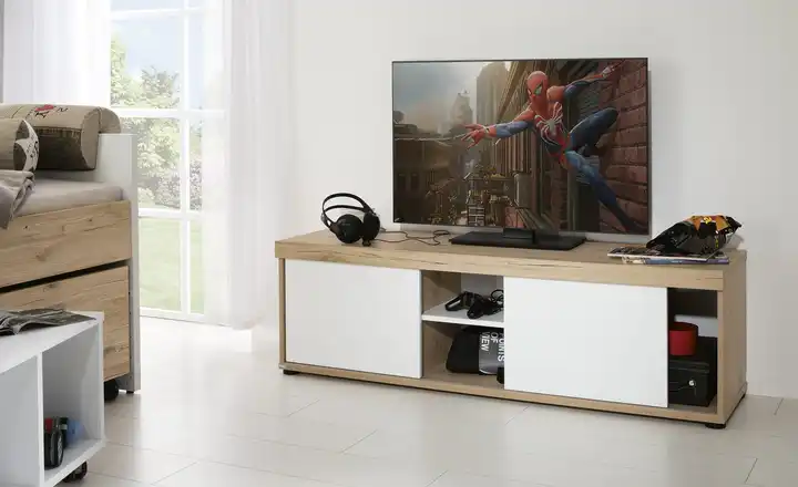 Das Lowboard Fionn von PAIDI überzeugt durch seine Vielseitigkeit. Es kann als Lowboard, als Stellfläche für einen Fernseher oder sogar als Bank genutzt werden. Fionn hat eine stabile Qualität mit Gütesiegel und fünf Jahren Garantie. Die Oberflächen sind beschichtet und deshalb kratzerunempfindlich. Fionn hat innen vier Fächer und ist mit zwei Schiebetüren ausgestattet. Ein praktischer Kabeldurchlass in der Rückwand verhindert Kabelsalat.