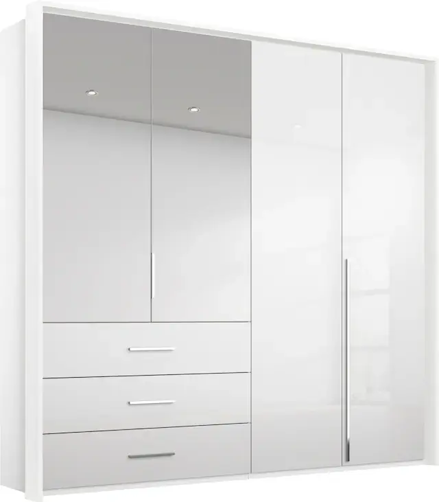 Inkl. Wäscheeinteilung. Inkl. Krawattenhalter bei den Schränken Breite 250 cm und 300 cm. Schubkästen mit Unterflurschiene, Selbsteinzug und Dämpfung. Passepartout optional mit Beleuchtung. Made in Germany! Ausgezeichnet mit dem blauen Umweltengel und dem Goldenen M für geprüfte Möbel