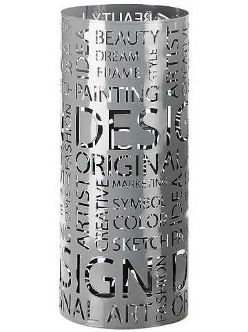 Schirmständer LETTERS aus Metall von Kobolo. In edlem GRAU lackiert mit augestanzten Buchstaben. Ein moderner Blickfang für jeden Eingangsbereich. Inklusive Abtropfschale aus Kunststoff und einem Haken für kleine Schirme/Knirpse. Wird ohne Deko geliefert.