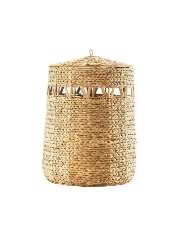 Der runde Wäschebehälter mit Deckel von Kobolo ist aus natürlicher, handgeflochtener Wasserhyazinthe gefertigt. Der praktische Deckel macht den Korb zum perfekten Aufbewahrungsort und Ordnungshelfer. Der Korb ist vielseitig einsetzbar und kann als Wäschekorb, Aufbewahrungskorb für Decken und Kissen oder Spielzeugkorb verwendet werden. Der Korb aus Wasserhyazinthe wird in Handarbeit aus Naturmaterialien hergestellt, weshalb Abweichungen in Form, Farbe und Größe möglich sind.
