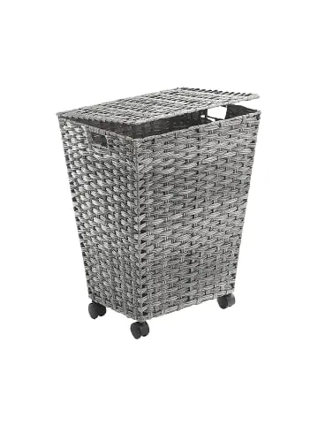 Praktischer Wäschebehälter von Kobolo. Oberflächendeko aus Polyrattan geflochten. Ein Blickfang für jedes Bad in grau. Dieser Wäschebehälter wird in Handarbeit gefertigt.