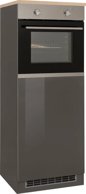 Geräte-Umbauschrank für Backofen und Kühlschrank. Gesamtmaße (B/T/H): 60/60/165 cm. Hochwertige Hochglanz-MDF-Fronten. Elegantes griffloses Design. Made in Germany