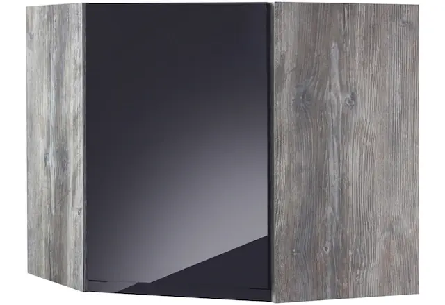 Eck-Hängeschrank mit einer Tür. Gesamtmaße (B/T/H): 60/34/57 cm. Hochwertige Hochglanz-MDF-Fronten. Elegantes griffloses Design. Made in Germany