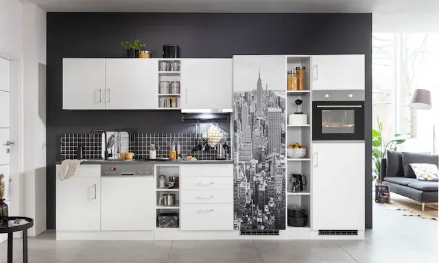 Hochwertiger Küchenhängeschrank aus Holzwerkstoff. Bietett viel praktischen Stauraum. Der Türanschlag kann beliebig montiert werden. Beliebig erweiterbar, auch über Eck. Alle Scharniere sind aus Metall