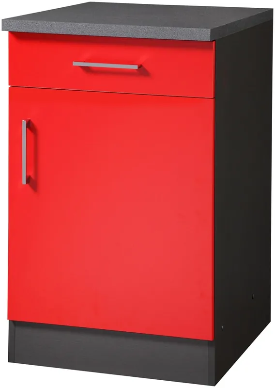 Hochwertiger Küchenunterschrank aus Holzwerkstoff. Inklusive 30 mm starker Arbeitsplatte. Bietet viel praktischen Stauraum. Alle Beschläge sind aus Metall. Beliebig erweiterbar, auch über Eck