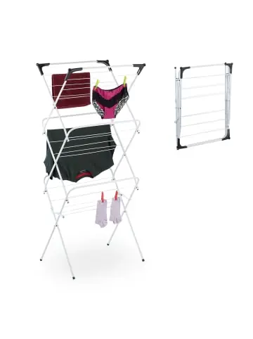 Will man seine Wäsche nach dem Waschgang trocknen, nimmt das oft viel Platz in Anspruch. Eine platzsparende Lösung bietet Dir stattdessen dieser robuste Standtrockner. Auf 3 Ebenen mit insgesamt 18 Stangen kannst Du Deine Oberteile, Hosen oder Unterwäsche auf dem Standtrockner aufhängen. Der Wäscheturm ist besonders bei Platzmangel und für kleine Haushalte praktisch. Bei Nichtgebrauch lässt sich der Falt-Wäscheständer flach zusammenklappen und einfach verstauen.Wäscheständer im Detail – Maße H x B x T: ca. 136 x 62 x 51 cm – Gefaltet H x B x T: ca. 6 x 62 x 74 cm – Stangenbreite: ca. 55 cm – Traglast: max. 10 kg – Gewicht: ca. 2 kg – Material: Eisen, PP-Kunststoff – Verschiedene FarbenPlatzsparender Turm-Wäscheständer – 3 Ebenen mit insgesamt 18 Stangen – Zum Trocknen und Lüften Deiner Kleidung – Zusammenklappen bei Nichtbenutzung – Vor allem für kleine Räume praktisch – Aus stabilem Metall mit Kunststoff-Kappen – Mit Ösen zum Aufhängen von KleiderbügelnLieferumfang – 1x Faltwäscheständer in Farbe nach Wahl – Dekoartikel sind nicht im Lieferumfang enthalten