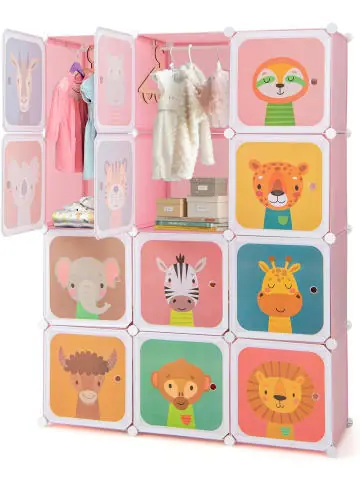 Kostenloser Rückversand COSTWAY Kleiderschrank Kinder mit 12 Würfeln in Rosa günstig kaufen | limango