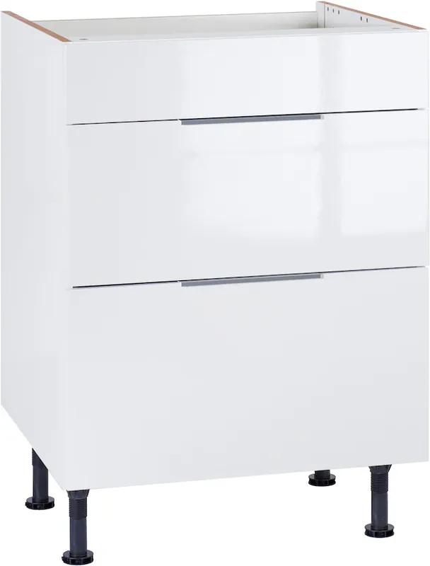Maße (B/T/H): 60/58,4/87 cm. Soft-Close-Funktion. Vollauszug – alles sofort greifbar. Metallgriffe. Made in Germany