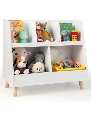 Beschreibung: Haben Sie genug vom Beseitigen des Chaos im Kinderzimmer? Das 2-in-1-Bücherregal und die Spielzeugregal sind eine großartige Lösung! Es verfügt über ein Design mit mehreren Würfeln für die geordnete Aufbewahrung, in dem ausreichend Platz für Bücher, Spielzeug, Dekorationen usw. ist. Außerdem ist die gesamte Oberfläche gratfrei und jede Ecke ist abgerundet, sodass Kinder sich nicht versehentlich kratzen. Dank der 4 Massivholzbeine und der Kippschutzvorrichtungen ist das Spielzeugregal superstabil. Und da es 11 cm über dem Boden steht, bleibt es staubfrei. Das offene Bücherregal ist außerdem 71 cm hoch, perfekt, damit Kinder die gewünschten Bücher und Spielzeuge selbst sehen und herausholen können. Durch die Platzierung im Spielzimmer, Kinderzimmer und Schlafzimmer werden die Lese- und Organisationsfähigkeiten der Kinder langfristig erheblich verbessert. Schließlich ist die gesamte Montage sehr einfach. Kurz gesagt: ein perfektes Geschenk für Kinder.Eigenschaften: Kombiniert geschickt ein Bücherregal und eine Spielzeugtruhe Kinderfreundliche Höhe von 71 cm für einfachen Zugriff Bis zu 5 Fächer für eine geordnete Aufbewahrung Hohe Stabilität wird durch Kippschutz-Sets an der Wand gewährleistet Stabile Holzkonstruktion sorgt für starken Halt 4 Massivholzbeine sind erhöht, um Staub fernzuhalten Abgerundete Ecken und glatte Kanten für sicheres Berühren Kanten, die vor dem Herunterfallen schützen, halten Gegenstände an ihrem Platz Material: MDF, Massivholz Gesamtmaße: 80 x 35 x 71 cm (L x B x H) Größe jedes oberen Fachs: 25 x 23 x 23 cm (L x B x H) Größe jedes unteren Fachs: 38 x 31 x 34 cm (L x B x H) Höhe über dem Boden: 11 cm Gesamttragfähigkeit: 31 kg Nettogewicht: 12,5 kgLieferungsumfang: 1 x Kinderregal 1 x Handbuch