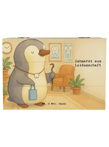 Die Holzkiste von Mr. & Mrs. Panda ist das perfekte Aufbewahrungselement für all deine wertvollen Erinnerungen! Sie ist eine praktische Lösung, um besondere Gegenstände wie Fotos, Geschenke oder kleine Schätze sicher zu verstauen. Diese Kiste besteht aus robuster Holzfaser, was nicht nur Stabilität, sondern auch Langlebigkeit Versprechenrt. Die wunderschönen Motive und liebevollen Sprüche bringen Freude in jedes Zuhause und machen die Box zu einem echten Hingucker. Ob als Erinnerungskiste für die Kindheit, zur Kommunion oder Konfirmation – sie ist vielseitig einsetzbar. Die Einschlagscharniere ermöglichen ein leichtes Öffnen und Schließen der Kiste. Diese nicht abschließbare Holzkiste ist auch eine großartige Idee für nachhaltige Geschenkverpackungen! Pflegehinweis: Mit einem feuchten Tuch abwischen und schon strahlt sie wieder neu.Positives Zahnarztmotiv: Der kleine Pinguin, der als Zahnarzt arbeitet, zeigt uns, wie viel Freude ein Beruf bringen kann. Mit der Kraft des Satzes ‚Zahnarzt aus Leidenschaft‘ erinnert er uns daran, dass wir das, was wir tun, mit ganzem Herzen machen sollten. Jeder Besuch bei ihm ist wie ein kleiner Urlaub vom Alltag – der Zahnarztbesuch wird zum Vergnügen. In seiner Praxis geht es nicht nur um die Zähne, sondern um das Wohlbefinden seiner Patienten. Es ist eine Reise zu gesunden Zähnen und glücklichen Gesichtern.Rente & Jubiläum Kollektion: In der Berufe Kollektion von Mr. & Mrs. Panda steckt mehr als nur Kreativität; es ist eine Feier des beruflichen Lebenswegs in all seinen FaZeichentten. Diese Kollektion ist ein Tribut an all die harten Arbeiter, die ihren Beruf mit Leidenschaft ausüben. Von humorvollen bis zu herzlichen Motiven, entworfen mit dem unverkennbaren Charme von Mr. & Mrs. Panda, hat jedes Produkt die Kraft, eine Geschichte zu erzählen. Sei es als Abschiedsgeschenk für einen scheidenden Kollegen, zur Anerkennung eines besonderen Berufsjubiläums oder einfach als symbolisches Dankeschön – diese Kollektion trifft immer ins Herz. Die Vielfalt der Produkte Versprechenrt, dass für jeden Anlass und jede Berufsgruppe das Richtige dabei ist, ob für die engagierte Lehrerin, den einfallsreichen Architekten oder die fürsorgliche Pflegekraft. Schenken Sie ein Lächeln, das so unermüdlich ist wie die Menschen, die es verdient haben.Unser Produkt wird gesucht als: schmucktruhe, Aufbewahrungsbox aus Holz, Schatulle, Truhe, holzschatulle, Schatzkiste, schatzkiste holz, Holzbox mit Deckel, Kiste, Holzbox, Holz Aufbewahrungsbox, Erinnerungsbox, Aufbewahrungsbox Holz, Holztruhe, erinnerungsbox holz, Erinnerungskiste, Holzkiste, truhe mit deckel, Box aus Holz, box holz, Box, fotobox, Aufbewahrungstruhe, holzkästchen, Geschenk, fotokiste, Kiste mit Deckel, truhe holz, holzschachtel, Aufbewahrungskiste, Geschenkbox, schmuckbox, kiste holz, aufbewahrungskiste mit deckel, schmuckkiste, geschenkbox mit deckel, geschenkbox holz, Holzkiste mit Deckel, schatztruhe, geschenkkiste