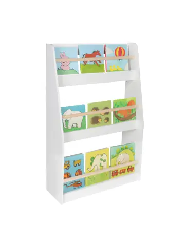 Dieses Bücherregal macht Ordnung halten zum Kinderspiel. In drei offenen Fächern finden Bücher, Hefte und Spielsachen ihren Platz und warten darauf, entdeckt zu werden. Das offene Design des Buchregals lädt Kinder ein, selbstständig zu stöbern und weckt spielerisch die Lust am Lesen. Das Spielzeugregal mit natürlichen Akzenten fügt sich dabei harmonisch in das Kinderzimmer ein. Querstangen verhindern, dass Bücher herausfallen, die Kippsicherung auf der Rückseite sorgt für einen sicheren Stand.Bücherregal Kinder im Detail – Maße H x B x T: ca. 90 x 60 x 20 cm – Oberes Fach H x B x T: ca. 21 x 58 x 7 cm – Mittleres Fach H x B x T: ca. 30 x 58 x 14 cm – Unteres Fach H x B x T: ca. 34 x 58 x 17,5 cm – Traglast: max. 10 kg – Material: MDF, Kiefernholz- Gewicht: ca. 5,6 kg – Farbe: Weiß, NaturSpielzeugregal für das Kinderzimmer – Mit drei offenen Fächern für viel Stauraum – Übersichtliche Aufbewahrung von Büchern und mehr – Kinder finden das Gesuchte schnell und unkompliziert – Fördert Eigenständigkeit und weckt die Lust am Lesen – Querstangen verhindern das Herausfallen der Bücher – Kippsicherung für mehr Stabilität und Sicherheit – Modernes Erscheinungsbild in Weiß und NaturtönenLieferumfang – 1x Kinderzimmerregal in Einzelteilen – Mit Anleitung und Kippschutz – Dekoartikel sind nicht im Lieferumfang enthalten