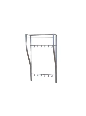 Moderne, praktische Wandgarderobe aus Metall mit einer alufarbenen Oberfläche beschichtet. Oben Gitterablageboden, darunter eine Kleiderstange und zweimal je 6 Metallhaken. Lieferung erfolgt zerlegt, inklusive Aufbauanleitung. Maße ca. cm: (B/H/T) 66/110/30. Befestigungsmaterial für die Wand, wie Schrauben und Dübel, sind im Lieferumfang nicht enthalten.- Pflgeleichte, glatte Oberflächen- Mit Ablageboden, Kleiderstange und 12 Kleiderhaken- Breite 66 cm