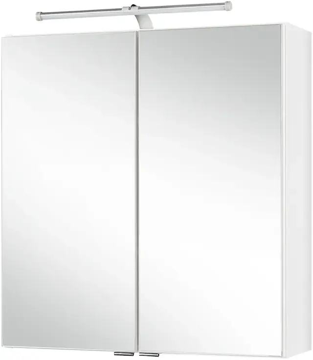 Gedämpfte Scharniere. Inklusive LED-Aufbauleuchte. Verstellbare Einlegeböden. Steckdose frei positionierbar