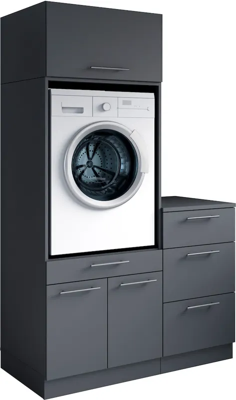 Das Set bietet großzügigen Stauraum für Handtücher, Reinigungsmittel und weitere Utensilien des täglichen Bedarfs.. Türanschläge recht/links wechselbar. mit höhenverstellbaren Füßen. mit Soft-Close-Funktion für die Türen und Schubkästen. Setkombination ist aus starkem langlebigem Holzwerkstoff melaminbeschichtet. Made in Europa