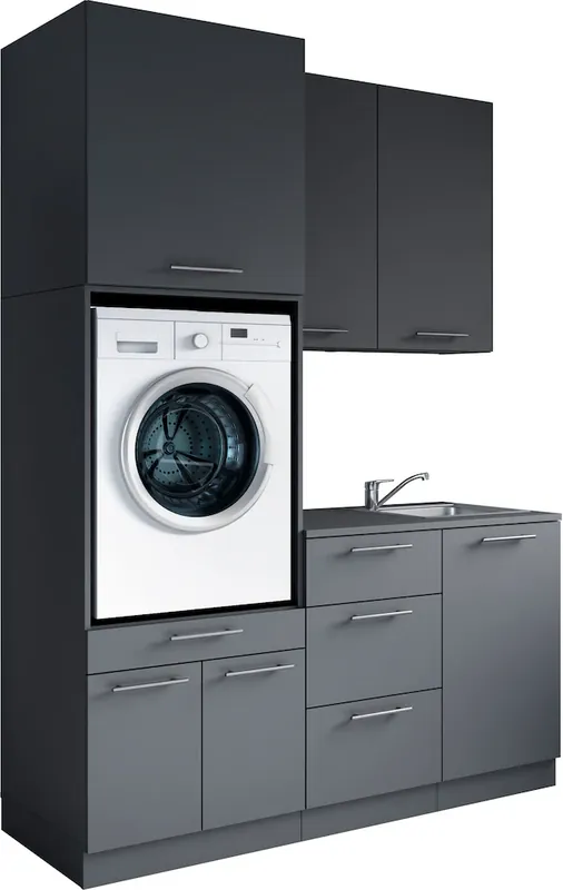 Das Set bietet großzügigen Stauraum für Handtücher, Reinigungsmittel und weitere Utensilien des täglichen Bedarfs.. Türanschläge recht/links wechselbar. mit höhenverstellbaren Füßen. mit Soft-Close-Funktion für die Türen und Schubkästen. Setkombination ist aus starkem langlebigem Holzwerkstoff melaminbeschichtet. Made in Europa