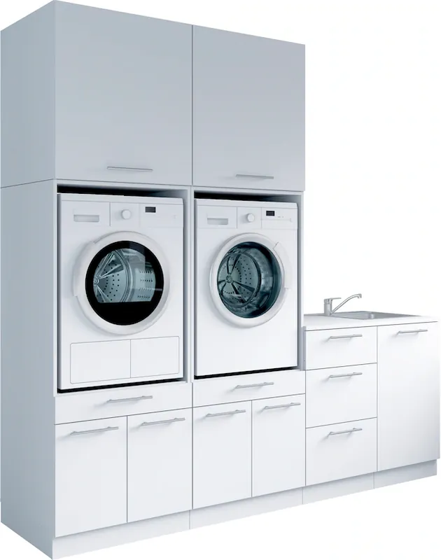 Das Set bietet großzügigen Stauraum für Handtücher, Reinigungsmittel und weitere Utensilien des täglichen Bedarfs.. Türanschläge recht/links wechselbar. mit höhenverstellbaren Füßen. mit Soft-Close-Funktion für die Türen und Schubkästen. Setkombination ist aus starkem langlebigem Holzwerkstoff melaminbeschichtet. Made in Europa