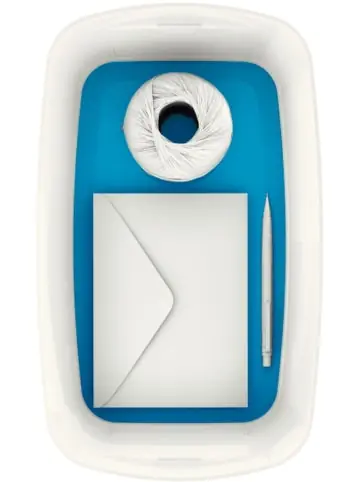 Aufbewahrungsbox MyBox Klein A5 mit Deckel ABS weiß/blauLeitz Aufbewahrungsbox MyBox, Klein, mit Deckel, für DIN A5Für A5-Dokumente und kleinere Büro- oder Home-AccessoiresDeckel mit leichter Einrastfunktion, dennoch leicht zu öffnenRahmen des Deckels ist ausgelegt auf sicheres StapelnMit weichen, abgerundeten Ecken für eine einfache ReinigungZwei Boxen MyBox Klein passen auf eine Box MyBox MittelKonische Form für platzsparendes TransportierenBei Nichtgebrauch platzsparend ineinander stapelbarMit Zweifarbeneffekt: weiße Hochglanzoptik, Boden in attraktiver FarbeRobust, kratzfest und wasserdichtModularer Aufbau zur besseren Organisation und für maximale Flexibilität: kombinierbar mit den Aufbewahrungsschalen MyBox und den Einsätzen MyBoxMaterial: hochwertiger ABS-Kunststoff, Lebensmittelechtheit zertifiziertVolumen: 5 LiterFormat: 318 x 128 x 191 mmFarbe: weiß/blau