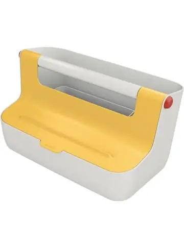 Mobile Aufbewahrungsbox Cosy ABS-Kunststoff hellgrau/gelbLeitz Mobile Aufbewahrungsbox CosyLeicht und einfach mit einer Hand zu tragenGeräumig und platzsparendTragegriff mit Aluminium verstärktMit farbigem KlappdeckelFür Hot-Desking oder Büro- oder Home-AccessoiresIntelligente Aufteilung der Fächer für eine bessere Organisation und schnellen ZugriffDie Kante des Klappdeckels kann als Halter für Tablet oder Smartphone genutzt werdenMit abgerundeten Ecken für eine einfache ReinigungMatte OberflächeRobust, kratzfest und wasserdichtIn Duo-OptikMaterial: ABS-KunststoffFormat: 367 x 196 x 214 mmFarbe: hellgrau/gelb.