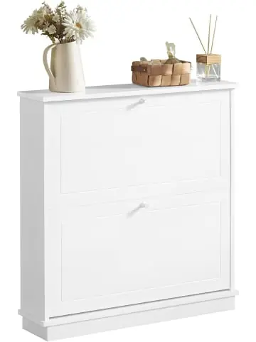Mit diesem Schuhkipper sagen Sie dem Schuhchaos in Ihrem Flur den Kampf an! Der geschlossene Schuhschrank schützt Ihre Sandalen, High Heels und Turnschuhe gegen Staub, Ausbleichen und sorgen für einen ordentlichen Flur. Die obere Platte kann auch als Ablagefläche genutzt werden. Stellen Sie Blumen oder einen Bilderrahmen auf und Schaffen Sie so Ihr wohlfühlambiente. Zur kühlen Eleganz des modernen Wohnstils passt ein geradliniger Schuhkipper in eleganter Farbe. Dieser Schuhkipper ist wunderbare Deko in Ihrem Eingangsbereich. Bereichern Sie Ihr Heim mit diesem extravaganten Möbelstück!Gewicht: ca.16,9kg; Belastbarkeit: bis 30kg; Material: MDF(E1).