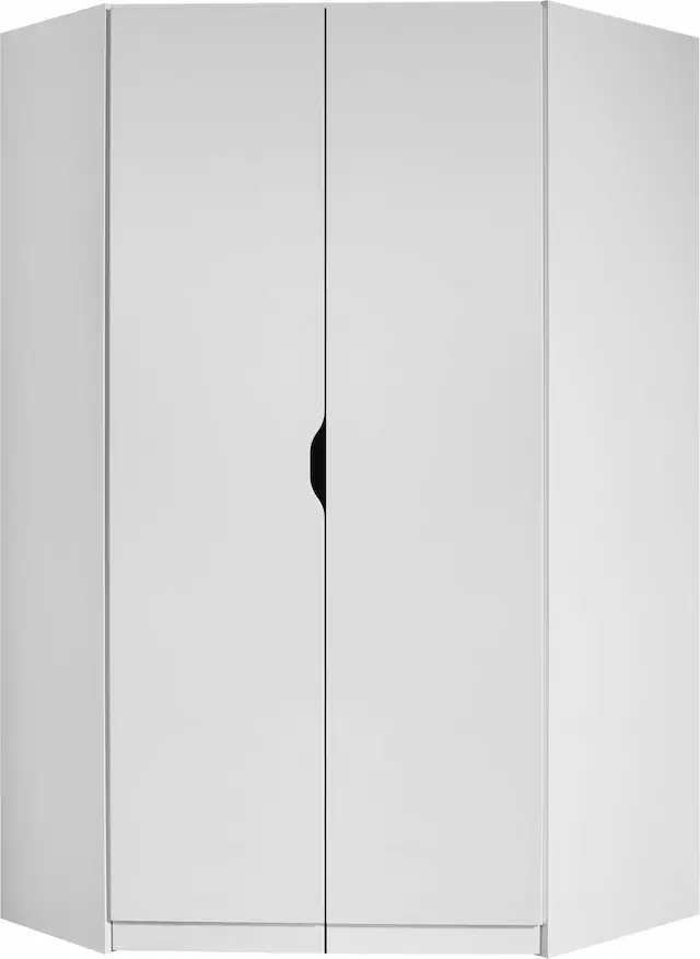 Eckkleiderschrank mit 2 Türen. Im modernen Scandinavien Look. Mit Griffmulden. Schenkelmaße: 117/104 cm. Höhe 197 cm
