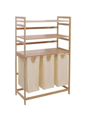 – Markeninhaber TÜV-Süd QM zertifiziert mit Nr. 12 100 59626 TMS für Qualitäts-Management in Deutschland – Drei herausnehmbare Wäschesäcke – Wäschesäcke mit je 45 Litern Kapazität – Drei offene Ablageflächen für Handtücher oder Deko – Platzsparendes Design für Bad, Schlafzimmer oder Hauswirtschaftsraum – Stabiler Rahmen aus Bambus für sicheren Stand – Offene Konstruktion für gute Belüftung der Wäsche – Zeitloses Design passend zu vielen Einrichtungsstilen – Vielseitig einsetzbar als Wäscheregal und Aufbewahrungslösung – FSC®-zertifiziert (N004267) – Lieferung erfolgt ohne Dekoration- Dieses Wäscheregal mit Wäscheorganizer sorgt für Ordnung im Alltag und bietet eine optimale Lösung zur Wäscheaufbewahrung. Drei herausnehmbare Wäschesäcke mit je 45 Litern Fassungsvermögen ermöglichen eine saubere und übersichtliche Trennung der Wäsche.- Zusätzlich stehen drei offene Ablageflächen zur Verfügung, die Platz für Handtücher, Pflegeprodukte oder dekorative Accessoires bieten. Das platzsparende Design macht das Regal zur perfekten Wahl für Bad, Schlafzimmer oder den Hauswirtschaftsraum. Maße HxBxT (ca.):Gesamt: 125x80x40 cmObere Ablage: 6x78x40 cmMittlere/untere Ablage: 23x78x40 cmWäschesack: 48x16x38 cmHöhe Füße: 6,5 cm Material:Rahmen: Bambus mit Nitrocellulose-Lack beschichtetetWäschesack: Stoff/Textil (100% Polyester) Dieses hochwertige Wäscheregal mit integriertem Wäscheorganizer vereint durchdachte Funktionalität mit einem zeitlosen Design und ist die ideale Lösung für eine strukturierte und platzsparende Wäscheaufbewahrung. Drei herausnehmbare Wäschesäcke mit jeweils 45 Litern Kapazität ermöglichen es, die Wäsche bequem und übersichtlich nach Farben, Materialien oder Waschtemperaturen zu trennen und zu sortieren. So bleibt der Haushalt organisiert und der nächste Waschgang ist optimal vorbereitet. Ergänzt wird das System durch drei offene Ablageflächen, die zusätzlichen Stauraum für Handtücher, Pflegeprodukte, Waschmittel oder dekorative Elemente bieten. Das freistehende Standregal überzeugt durch sein platzsparendes Design und passt perfekt ins Badezimmer, Schlafzimmer oder in den Hauswirtschaftsraum. Der stabile Rahmen aus Bambus sorgt für einen sicheren Stand und verleiht dem Möbelstück eine natürliche Optik. Dank der offenen Konstruktion ist eine gute Belüftung der Wäsche gewährleistet, wodurch unangenehme Gerüche vermieden werden. Das moderne und zugleich zeitlose Design fügt sich harmonisch in viele Einrichtungsstile ein und macht das Wäscheregal zu einer praktischen wie auch optisch ansprechenden Aufbewahrungslösung. Vielseitig einsetzbar, funktional durchdacht und ideal für alle, die ihre Wäsche effizient sortieren und stilvoll aufbewahren möchten. Lieferung erfolgt ohne Dekoration.Versandzustand: Zerlegt–Sicherheitshinweise für Teilartikel mit Artikelnummer 120018 Dieser Artikel ist eine Wäschtruhe / ein Wäschekorb und sollte nur als solcher verwendet werden. Der Artikel ist nur für den Innenbereich geeignet. Überladen Sie den Artikel nicht. Vorsicht: Verletzungsgefahr! Setzen, stellen oder stützen Sie sich nicht auf den Artikel. Vorsicht: Kippgefahr & Verletzungsgefahr! Sorgen Sie immer für einen festen Stand des Artikels.Vorsicht Erstickungsgefahr! Verpackungsmaterial, wie Plastikbeutel, gehören nicht in Kinderhände. Bitte von Babys und Kleinkindern fernhalten! Nicht über den Kopf ziehen! Vorsicht: Verschluckungsgefahr! Achtung dieser Artikel kann verschluckbare Kleinteile enthalten! Halten Sie die Kleinteile von Kindern fern! Regelmäßige Prüfung:Prüfen Sie den Artikel regelmäßig alle 3 Monate auf Beschädigungen und gelöste Verbindungen. Ziehen Sie lose Schrauben wieder fest an! Verschleiß:Sollten Beschädigungen entdeckt werden, darf der Artikel nicht mehr genutzt werden!Allgemeine Entsorgung: Entsorgen Sie den Artikel und dessen Verpackungsmaterial umweltgerecht gemä
