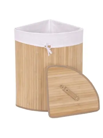 – Markeninhaber TÜV-Süd QM zertifiziert mit Nr. 12 100 59626 TMS für Qualitäts-Management in Deutschland – Nutzbare 50 Liter Innenraum – Lieferumfang: 1x Wäschekorb inkl. Deckel – Füllmenge (ca.): 50l – Mit Bodeneinsatz – Herausnehmbarer Wäschesack – Metallrahmen zur Stabilisierung – Kann platzsparend in der Ecke aufbewahrt werden- Praktisch und dekorativ – dieser Wäschekorb vereint spielerisch beide Eigenschaften. Mit einem herausnehmbaren Wäschesack und 50 Liter Fassungsvermögen ausgestattet, lässt diese Eck-Wäschebox keine Wünsche offen.- Schluss mit rumliegender Wäsche! Diese moderne Wäschetruhe hilft Ihnen schmutzige Wäsche ordentlich und sauber zu verstauen. Gleichzeitig lassen sich durch die herausnehmbaren Wäschesäcke Kleidungsstücke im Handumdrehen sortieren. Maße (ca.):Höhe: 61 cmBreite: 48 cmTiefe: 35 cm Material:Korb: BambusWäschesack: 53% Polyester, 30% Baumwolle, 17% Viskose HINWEIS zum Volumen:Wir geben Ihnen die nutzbaren Liter an. Viele Anbieter geben angebliche Liter an, die bestenfalls ein Außenvolumen darstellen – darin wären dann aber sogar Griffe und heraus stehende Deckel integriert. Das ist für Sie nicht nutzbar. Von einer derart geschönten Darstellung nehmen wir Abstand. Dieser schicke Wäschekorb erfüllt drei Aufgaben in einem, er ist praktisch, dekorativ und dank der Fertigung aus Bambus auch noch ökologisch gut verträglich. Ausgestattet mit einem herausnehmbaren Bodeneinsatz und einem ebensolchen Metallrahmen hat der faltbare Korb einen stabilen Stand. Der zugehörige Wäschesack ist bequem am Korb zu befestigen und sorgt zusätzlich dafür, dass Ihnen kein Wäschestück verloren geht. Die beiden seitlichen Tragegriffe verhelfen zu einem leichten und problemlosen Transport. Wer nicht nur irgendeinen Wäschekorb möchte, sondern einen zugleich nützlichen und optisch ansprechenden Haushaltshelfer, hat hier genau das Richtige gefunden.Versandzustand: Zerlegt–Sicherheitshinweise für Teilartikel mit Artikelnummer 61139 Dieser Artikel ist eine Wäschtruhe / ein Wäschekorb und sollte nur als solcher verwendet werden. Der Artikel ist nur für den Innenbereich geeignet. Überladen Sie den Artikel nicht. Vorsicht: Verletzungsgefahr! Setzen, stellen oder stützen Sie sich nicht auf den Artikel. Vorsicht: Kippgefahr & Verletzungsgefahr! Sorgen Sie immer für einen festen Stand des Artikels.Vorsicht Erstickungsgefahr! Verpackungsmaterial, wie Plastikbeutel, gehören nicht in Kinderhände. Bitte von Babys und Kleinkindern fernhalten! Nicht über den Kopf ziehen! Vorsicht: Verschluckungsgefahr! Achtung dieser Artikel kann verschluckbare Kleinteile enthalten! Halten Sie die Kleinteile von Kindern fern! Prüfen Sie den Artikel regelmäßig alle 3-6 Monate auf Beschädigungen und gelöste Verbindungen. Ziehen Sie lose Schrauben wieder fest an! Sollten Beschädigungen entdeckt werden, darf der Artikel nicht mehr genutzt werden! Benutzen Sie diesen Artikel nur für die bestimmungsgemäße Verwendung, im technisch einwandfreien Zustand und für private Zwecke. Andere Verwendungen gelten als nicht bestimmungsgemäß und können zu schweren Verletzungen und Beschädigungen führen. Für aus bestimmungswidriger Verwendung entstandene Schäden übernimmt der Hersteller keine Haftung.Allgemeine Hinweise: Bitte lesen Sie alle Hinweise sorgfältig durch, bevor Sie den Artikel aufbauen und verwenden. Verwahren Sie die alle Sicherheitsinformationen und Aufbauanleitungen gut auf. Für Ihre eigene Sicherheit und die Ihres Produktes, befolgen Sie bitte die Sicherheitshinweise. Eine falsche Handhabung könnte zu ernsten Verletzungen, beschädigtem Eigentum oder sogar dem Tod hinauslaufen.Pflegehinweise: Saugen Polstermöbel regelmäßig ab. Hat der Artikel einen Bezug pflegen und reinigen Sie diesen entsprechend nach Material (Textil, Leder, Kunstleder). Besteht ihr Möbel aus Holz nutzen Sie einen Staubwedel zur Reinigung. Für alle anderen Oberflächen und bei stärkerem Schmutz können Sie ein nebelfeuchtes Baumwolltuch verwenden. Keinesfalls sollten Sie scharfe oder scheuernde Reiniger verwenden, diese können Schäden verursachen. Für Möbel im Bad: Wasser und Kondenswasser sofort abwischen! Entsorgungshinweise: Entsorgen Sie den Artikel umweltgerecht. Überlegen Sie Alternativen zu Entsorgung wie Spenden oder Verkaufen. Elektrische Artikel gehören nicht in den Hausmüll. Entsorgen Sie diese an einem Recyclinghof für elektrische und elektronische Altgeräte, weitere Informationen erhalten Sie bei Ihrer örtlichen Gemeindeverwaltung. Einlagerungshinweise: Der Artikel sollte trocken und sauber sein, verwahren Sie diesen geschützt in dem Karton in dem er geliefert wurde.